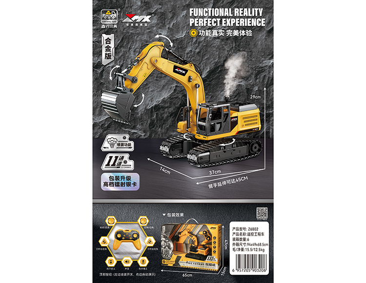 品 名:11通道遥控喷雾挖掘机(中号)